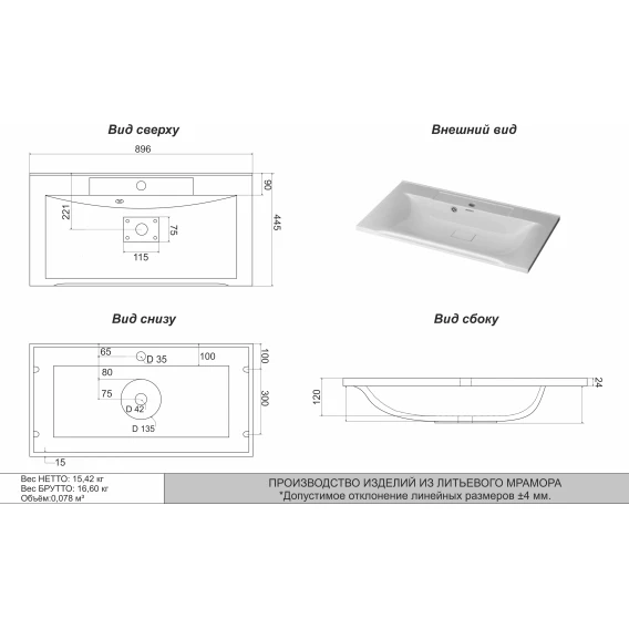 Раковина Uperwood Elen 291120425 89,6x44,5 см, накладная, белый