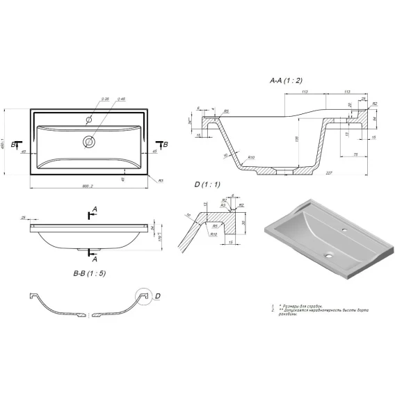 Намеченных отверстий для смесителя