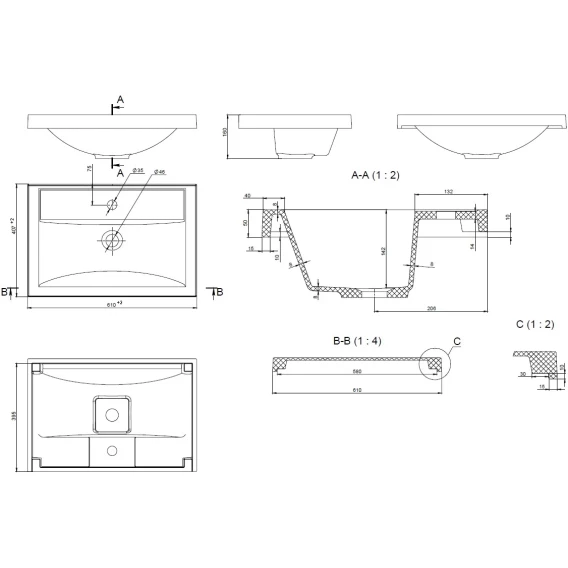 Намеченных отверстий для смесителя