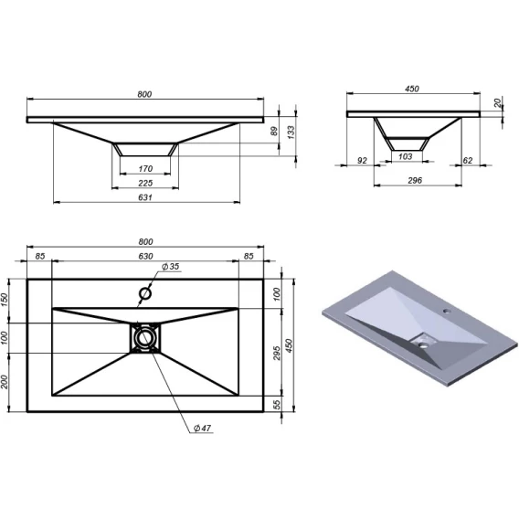 Раковина Uperwood Geo RGeo80g 80x45 см, накладная, белый