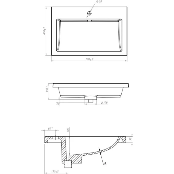 Глубина 45 см