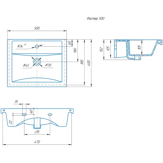Намеченных отверстий для смесителя