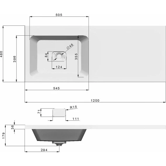 Глубина 48 см