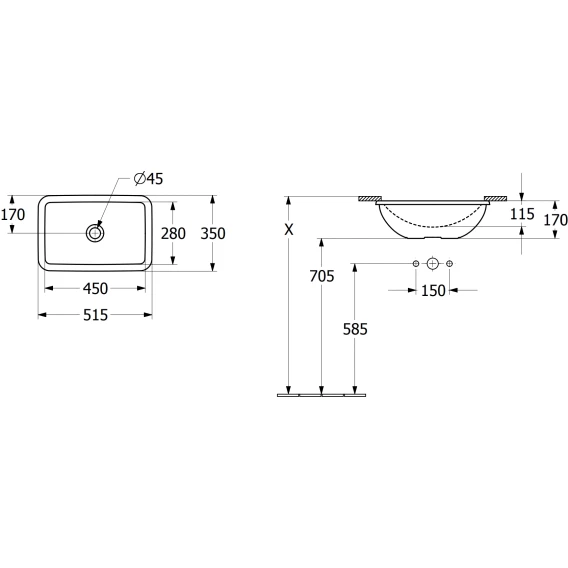 Раковина Villeroy & Boch Loop & Friends 4A560001 51,5x35 см, встраиваемая снизу, альпийский белый