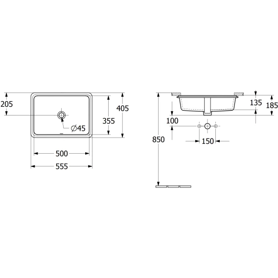 Раковина Villeroy & Boch Tube 41525001 55,5x40,5 см, встраиваемая снизу, альпийский белый