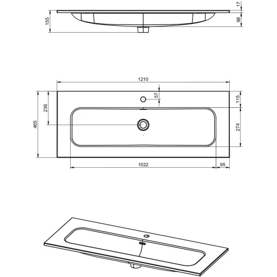 Раковина Visobath Idea 76700 121x46,5 см, накладная, белый