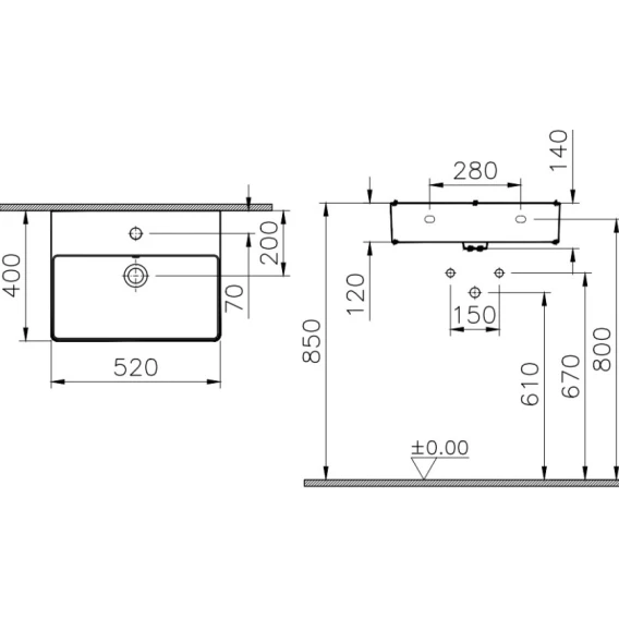 Раковина VitrA M20 8313B003-0001 52x40 см, накладная, подвесная, белый