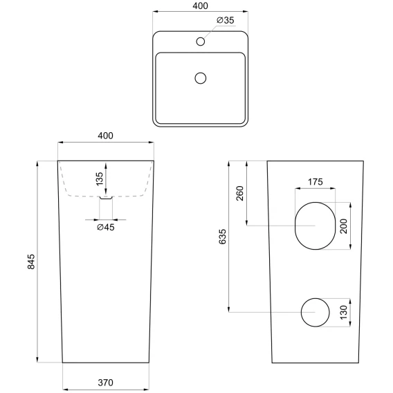Раковина Wellsee Callipy Art 33890300S 40x40 см, напольная, белый