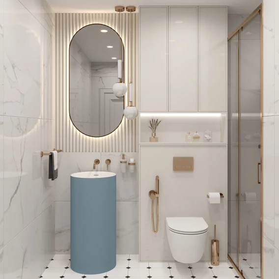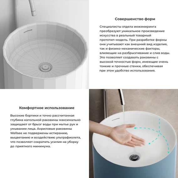 Раковина Wellsee Chalice Perfection 230621000 45x45 см, напольная, белый/светло-синий матовый