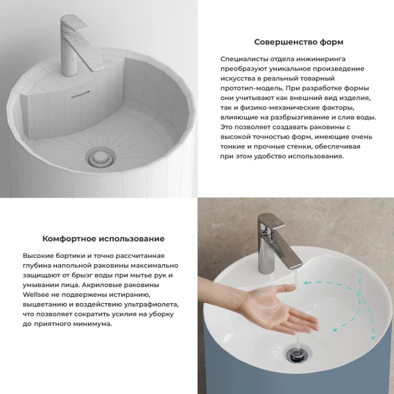 Раковина Wellsee Chalice Perfection 230628000 45x45 см, напольная, белый/светло-синий матовый