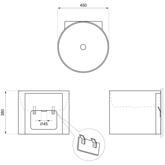 Раковина Wellsee M1 Limited Edition 318805000 45x45 см, подвесная, черный матовый