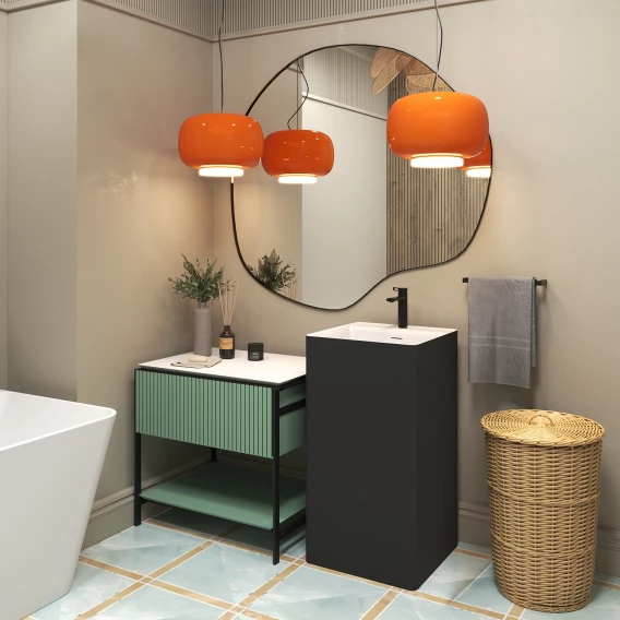 Раковина Wellsee Pure By Wellsee 230716000 45x45 см, напольная, черный матовый/белый
