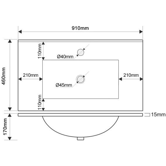 Намеченных отверстий для смесителя