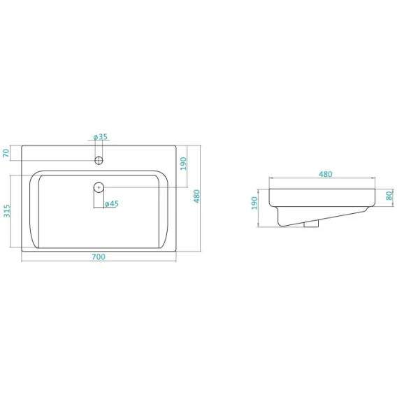 Раковина 70x48 см Diborg Тигода 1WH302083