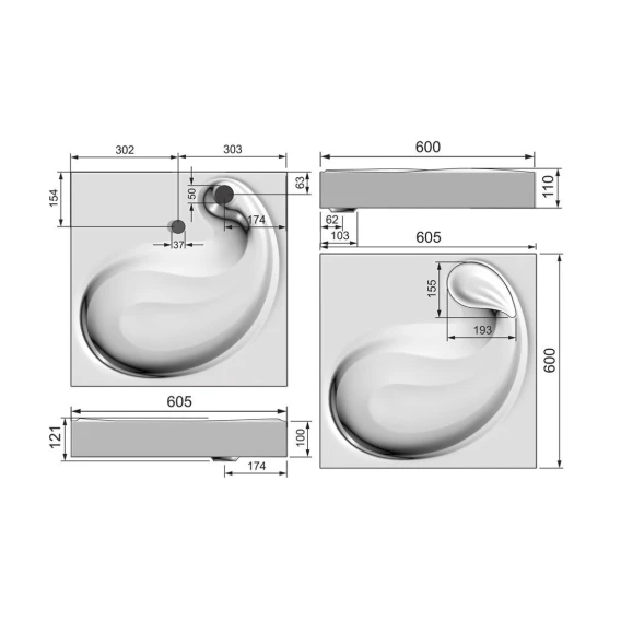 Раковина над стиральной машиной 60x60 см Velvex Buta rkBUT.60-81