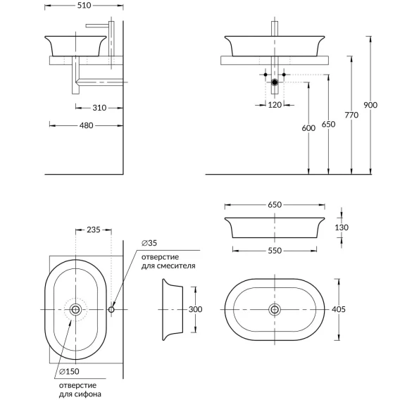 Готовых отверстий для смесителя