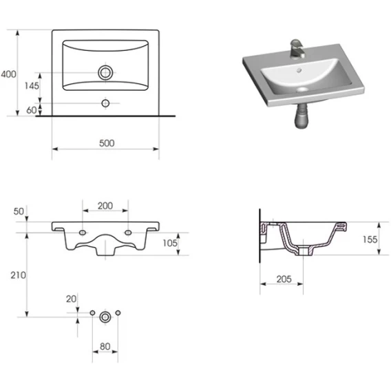 Раковина 50x40 см Velvex Como S-UM-COM50/1