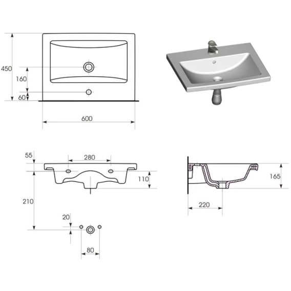 Раковина 60x45 см Velvex Como S-UM-COM60/1