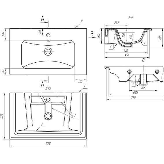 Раковина 77,9x47,5 см ASB-Woodline Эйфория