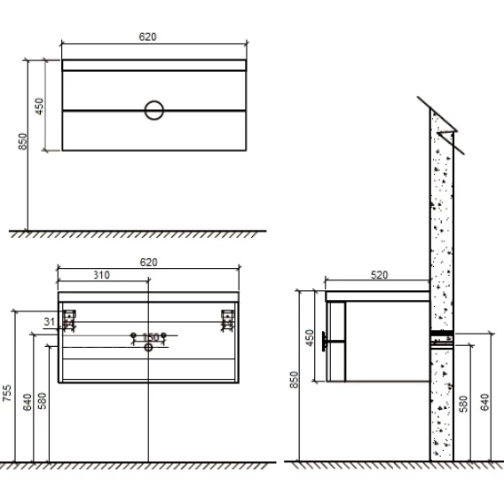 Глубина 52 см