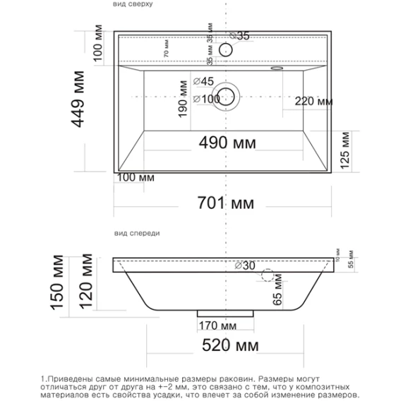 Намеченных отверстий для смесителя