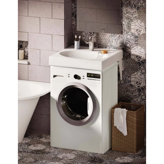 Раковина CLARO устанавливается на стиральную машину с фронтальной загрузкой. Глубина машины макс. 470 мм