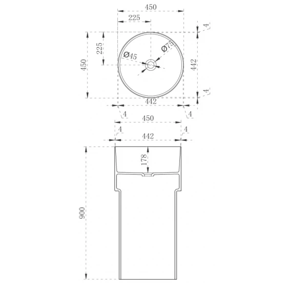 Раковина напольная 45x45 см Abber Kristall AT2701Onyx
