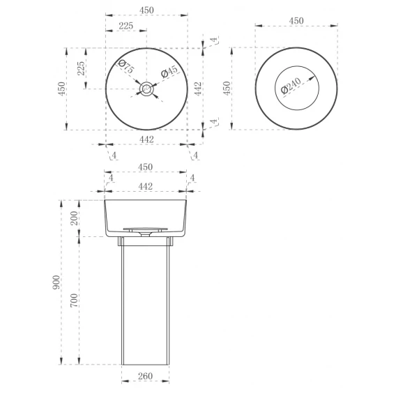 Раковина напольная 45x45 см Abber Kristall AT2702Onyx