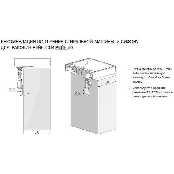 Раковина над стиральной машиной 80x50 см Акватон Рейн 1A72113KRW010