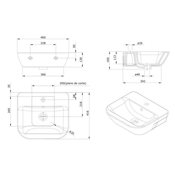 Раковина 46x41,6 см Sanindusa Look 134310004