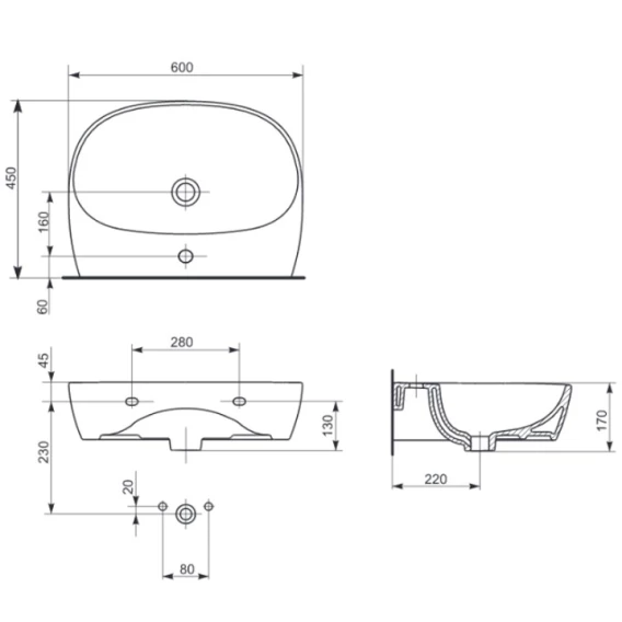 Раковина 60x45 см Cersanit Street Fusion UM-SFU60/1