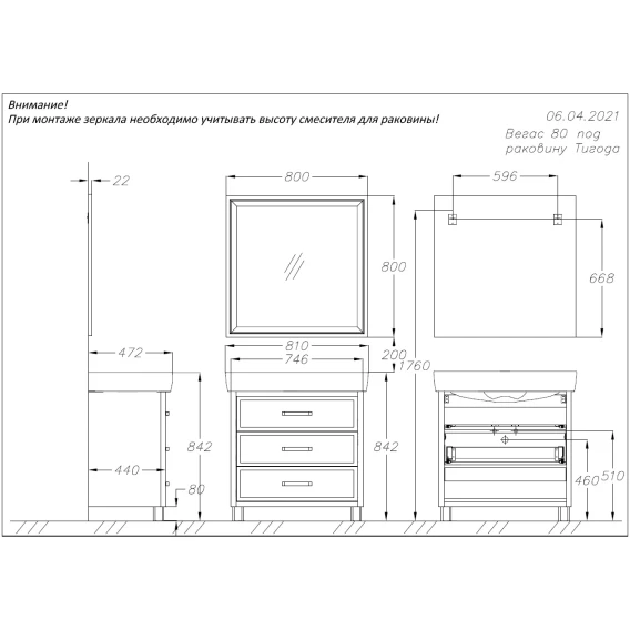 Комплект мебели белый матовый 81 см Opadiris Вегас