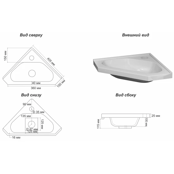 Тумба угловая белый глянец 61 см Corozo Триана SD-00000324