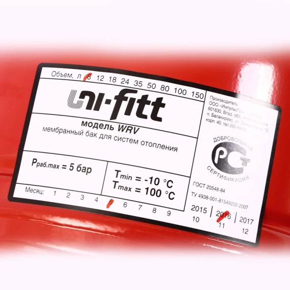 Расширительный мембранный бак 8 л Uni-Fitt WRV8-U