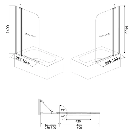 Шторка для ванны 100 см IDDIS Ray RAY6CS0i90 прозрачное