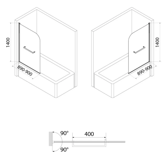 Шторка для ванны 90 см IDDIS Ray RAY6CS9i90 прозрачное