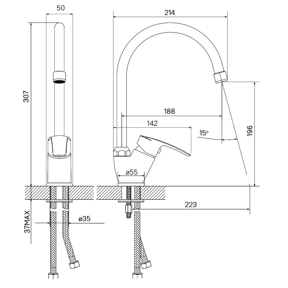 Крепление, Аэратор, Гибкая подводка