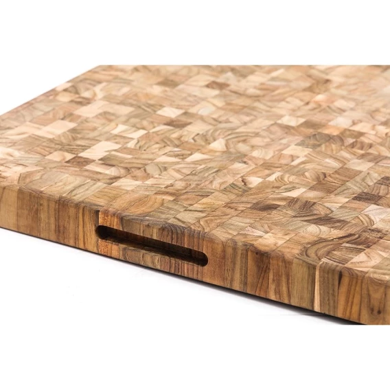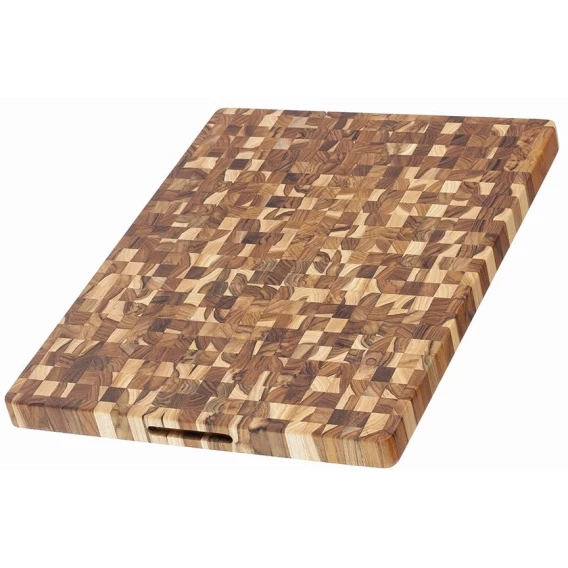 Торцевая разделочная доска Butcher Block станет незаменимым помощником как на домашней, так и на профессиональной кухне. Благодаря продуманному дизайну она также подойдет для сервировки.Массивная и увесистая доска выполнена из сертифицированной древесины тика, волокна которой расположены перпендикулярно режущей поверхности. Материал достаточно твердый и прочный, поэтому изделия служат долго, а ножи не затупляются и не оставляют глубоких порезов. Доски обладают влагоотталкивающими свойствами, не деформируются и не впитывают сок от нарезаемых продуктов.Размер: 61х46 смРекомендуется хранить на сухой поверхности в вертикальном положении, избегая попадания прямых солнечных лучей. Также следует периодически смазывать доску минеральным маслом, чтобы сохранить и продлить срок эксплуатации.