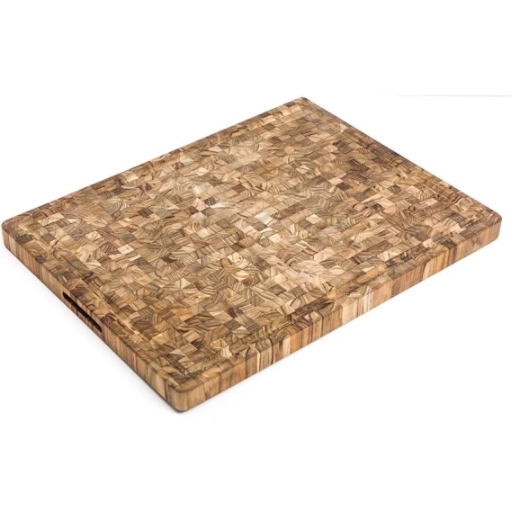 Торцевая разделочная доска Butcher Block станет незаменимым помощником как на домашней, так и на профессиональной кухне. Благодаря продуманному дизайну она также подойдет для сервировки.Массивная и увесистая доска выполнена из сертифицированной древесины тика, волокна которой расположены перпендикулярно режущей поверхности. Материал достаточно твердый и прочный, поэтому изделия служат долго, а ножи не затупляются и не оставляют глубоких порезов. Изделие имеет специальный канал для отвода соков, который помогает сохранять рабочую поверхность чистой. Доски обладают влагоотталкивающими свойствами, не деформируются и не впитывают сок от нарезаемых продуктов.Размер: 61х46 смРекомендуется хранить на сухой поверхности в вертикальном положении, избегая попадания прямых солнечных лучей. Также следует периодически смазывать доску минеральным маслом, чтобы сохранить и продлить срок эксплуатации.