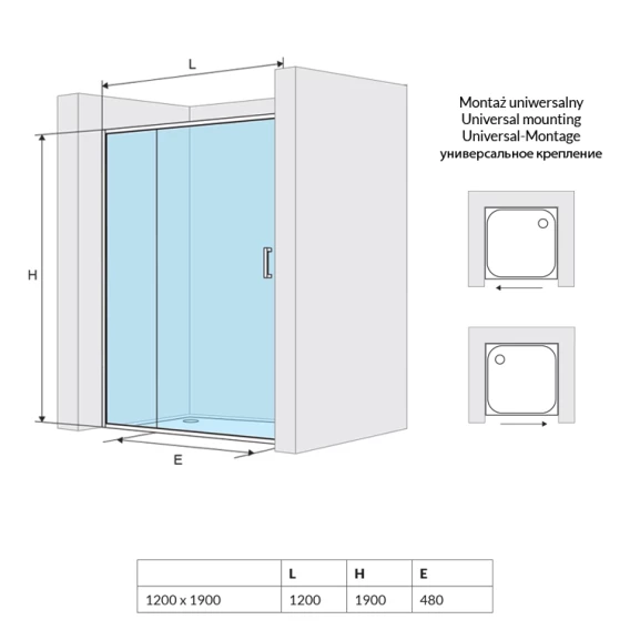 Душевая дверь раздвижная 120 см прозрачное стекло Excellent 201 KAAC.1805.1200.LP