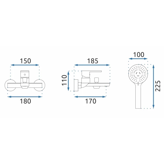 Аэратор, Металлическая розетка, Эксцентрики, Душевой шланг, Душевая лейка, Держатель для душевой лейки