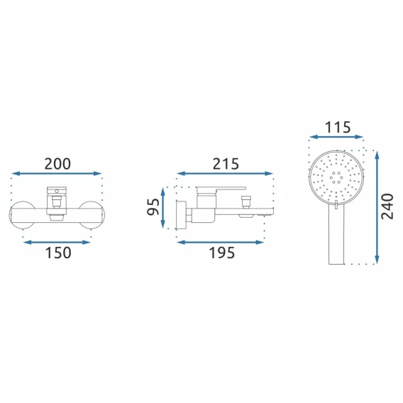 Аэратор, Металлическая розетка, Эксцентрики, Душевой шланг, Душевая лейка, Держатель для душевой лейки