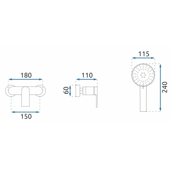Металлическая розетка, Эксцентрики, Душевой шланг, Душевая лейка, Держатель для душевой лейки