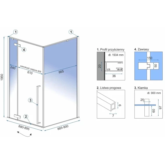 Душевой уголок 89,5x90 см Rea Fargo REA-K4903 прозрачное