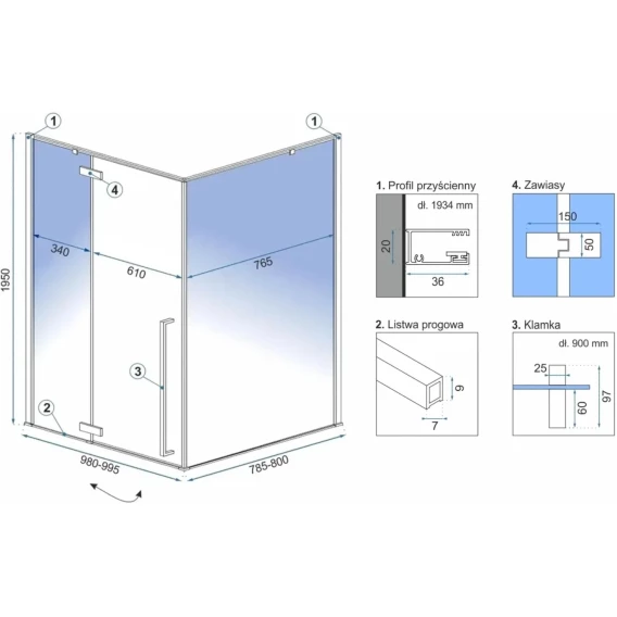 Душевой уголок 99,5x79,5 см RGW PA-146 Passage 020814680-11 прозрачное