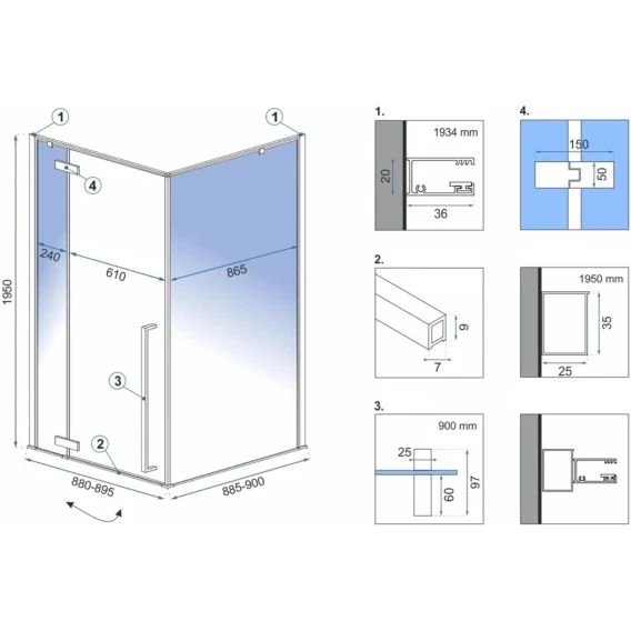 Душевой уголок 89,5x90 см Rea Fargo REA-K4903 прозрачное