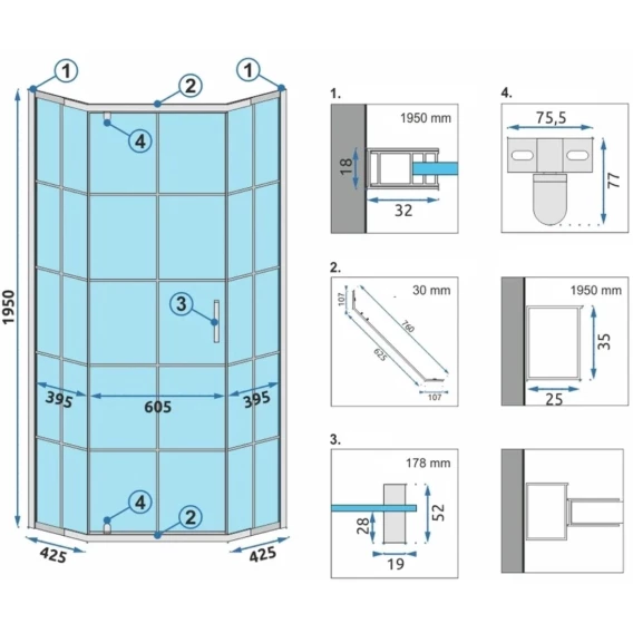 Душевой уголок 90x90 см Rea Hex REA-K8979 прозрачное
