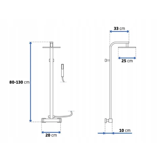 Металлическая розетка, Эксцентрики, Душевой шланг, Душевая лейка, Держатель для душевой лейки, Верхний душ, Кронштейн, Штанга душевая, Термостат