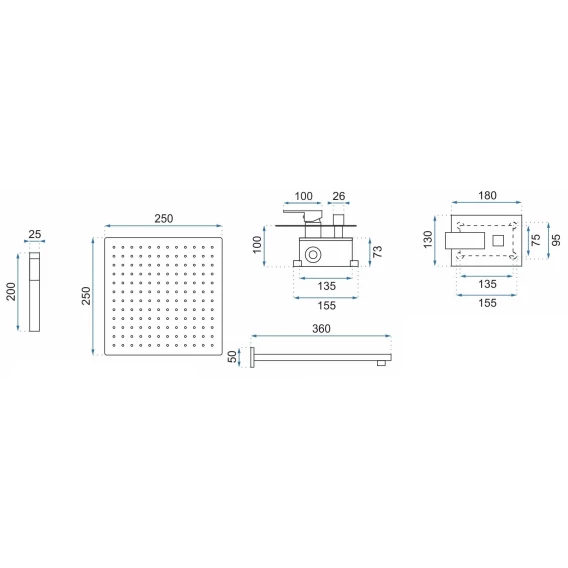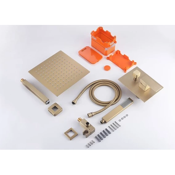Душевой шланг, Душевая лейка, Подключение для душевого шланга с держателем, Верхний душ, Скрытая монтажная часть, Смеситель, Кронштейн