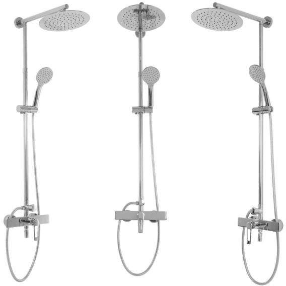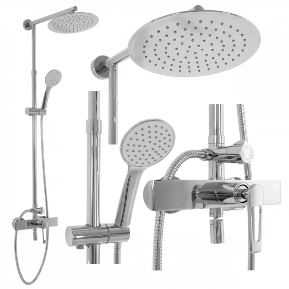 Аэратор, Металлическая розетка, Эксцентрики, Душевой шланг, Душевая лейка, Верхний душ, Смеситель, Кронштейн, Штанга душевая